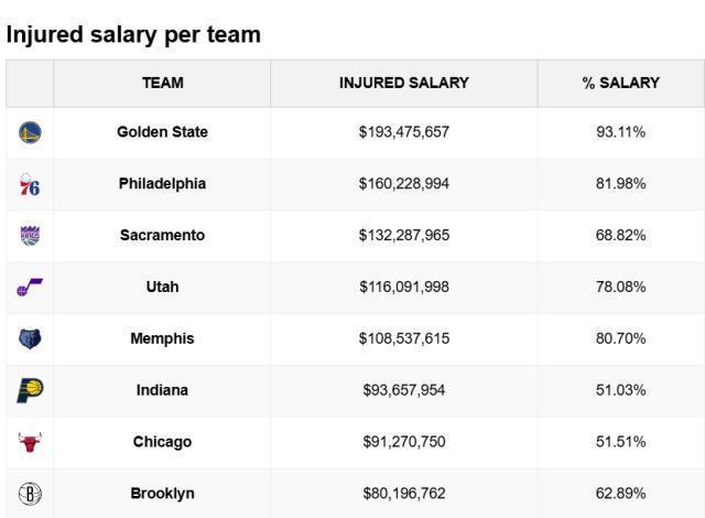 开云官方-勇士伤员总薪水1.93亿联盟最惨!首发年薪不足千万