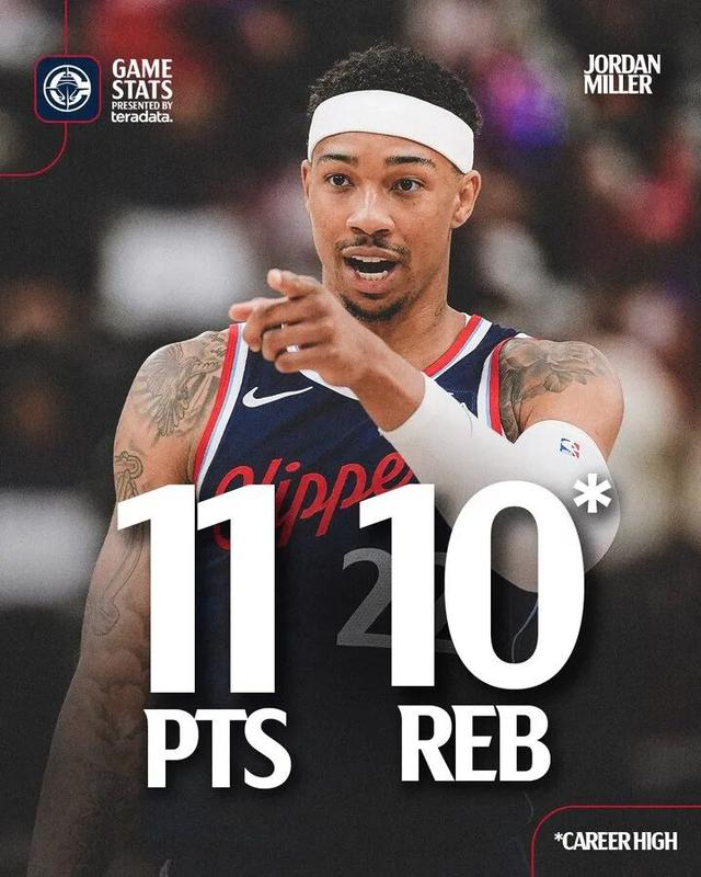 最近5场比赛,乔丹-米勒14.8分4.8板,质的飞跃。