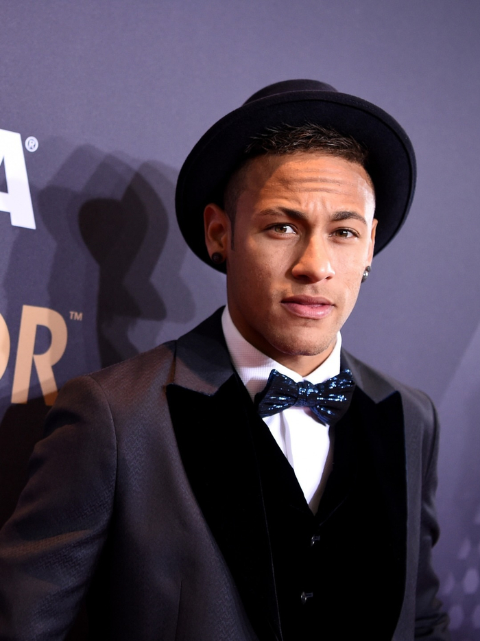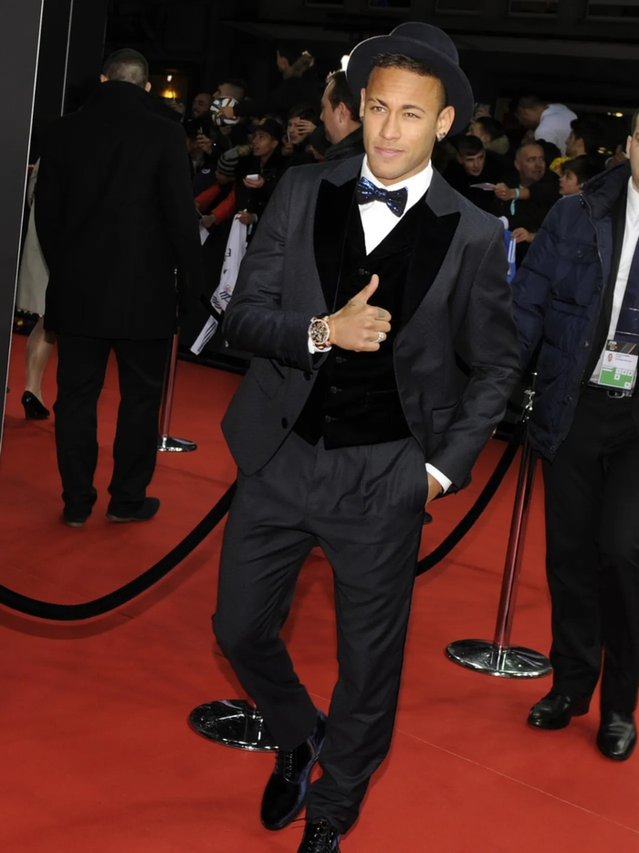 当内马尔戴着那顶帽子前往2015年金球奖晚会时。#足球#