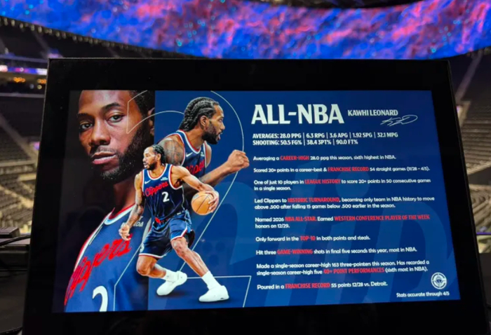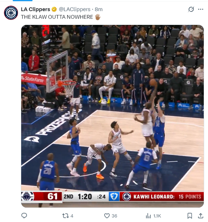 这场比赛快船主场的每一个座位上都贴着科怀-伦纳德生涯的履历,开场小卡的表现也的确炸裂,他带队打出了一波17-0的攻防浪潮,他此前已经连续54场比赛拿到20+这场比赛完成连续55场完全没有问题。